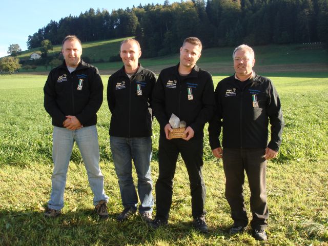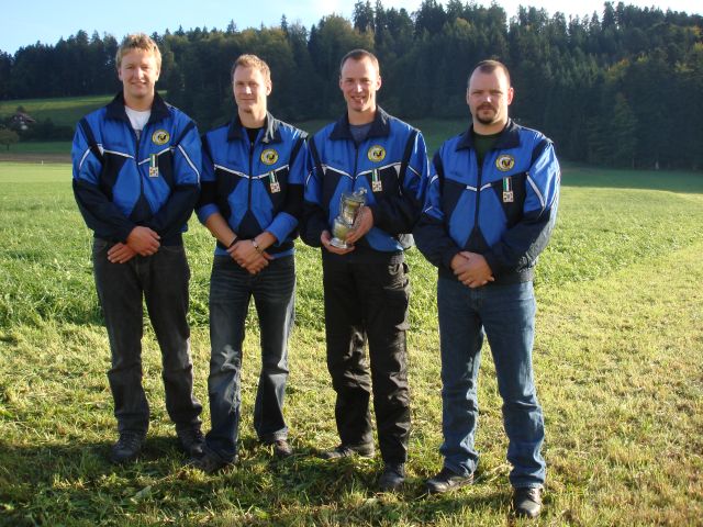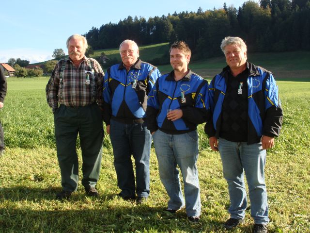 Die Gruppe "Di Nütwärtige", Hansrudolf Berger (90 Maximum), Marcel Zwahlen (89), Werner Trachsel (88+1) und Martin Zbinden (89), MS Guggisberg, hat mit 357 Punkten einen neuen Rekord erzielt!